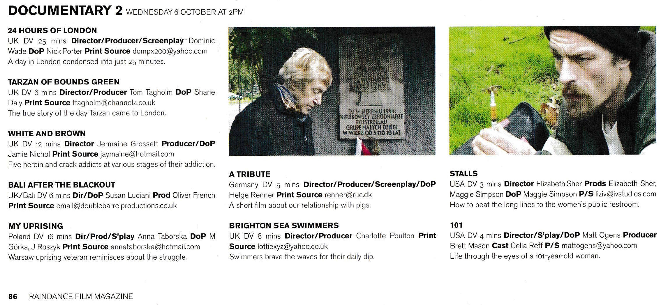 I was also invited to write an article for Raindance’s own magazine on films and film-making earlier that year. There’s some useful insight into how the final doco was structured in this piece.