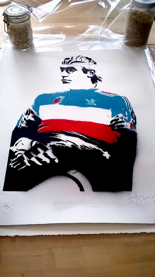 Stewy’s work is largely based on the notion of site-specific portraiture–that is, celebrating famous people in the areas where they lived and worked. The Westway and Ladbroke Grove is rich in pop culture history, and Stewy chose his subject carefully.
